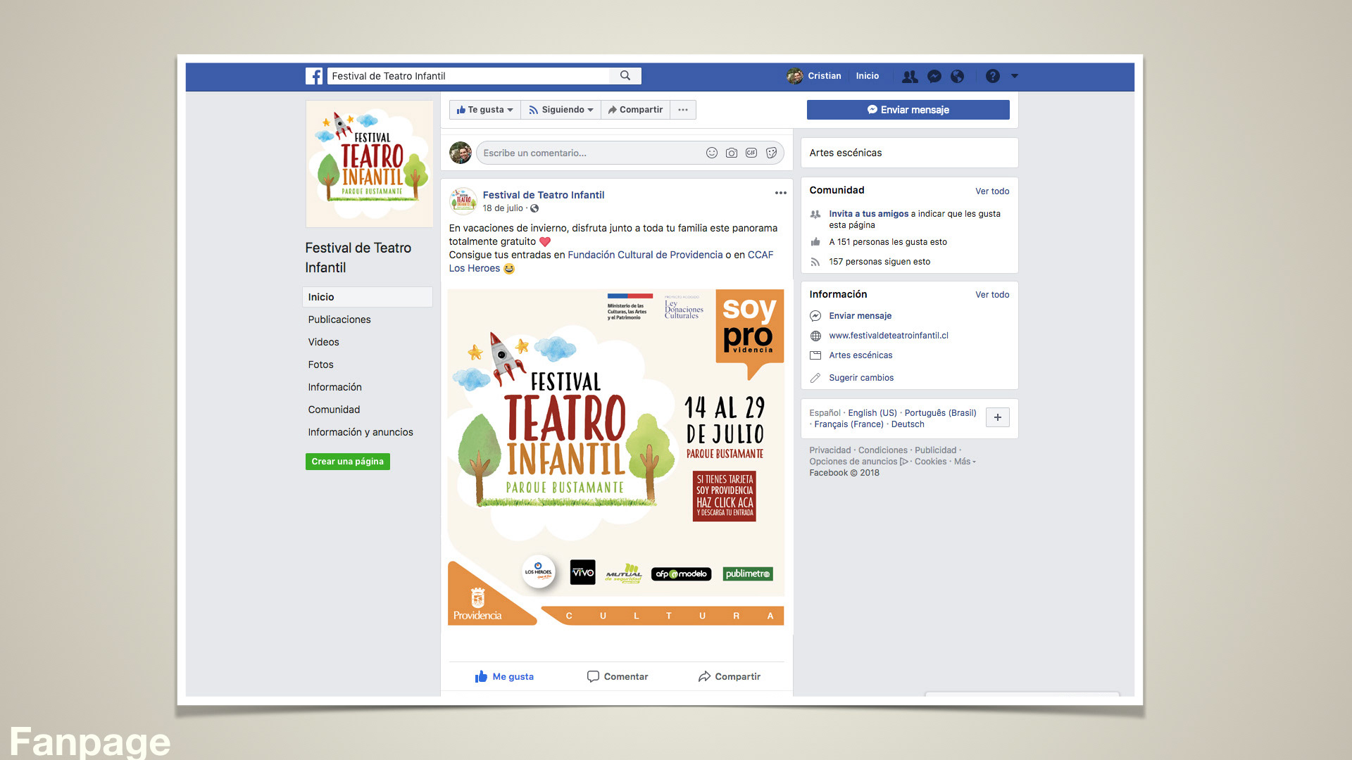 Creación proyecto Festival de Teatro infantil, comunicación y activaciones. Agencia Siete Comunicaciones.